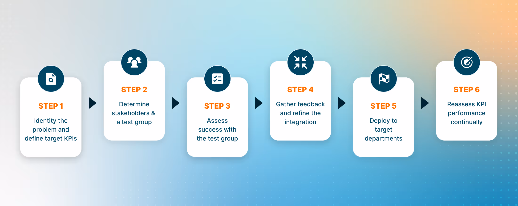 Throughout the process, continuously monitor performance against KPIs and gather feedback from teams and customers (if applicable) to refine the integration going forward.